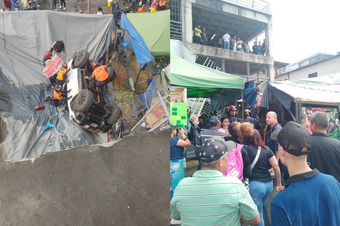 Caracas. – Once heridos, cinco niños y seis adultos, fue el trágico saldo de un accidente ocurrido este sábado a las 90:00am, cuando un vehículo cayó desde el estacionamiento de un gimnasio vertical sobre una feria de verduras, en la Av. Francisco de Miranda a la altura de Petare.