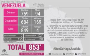 Foro Penal: régimen tiene secuestrados a 853 ciudadanos y 46 de ellos están desaparecidos