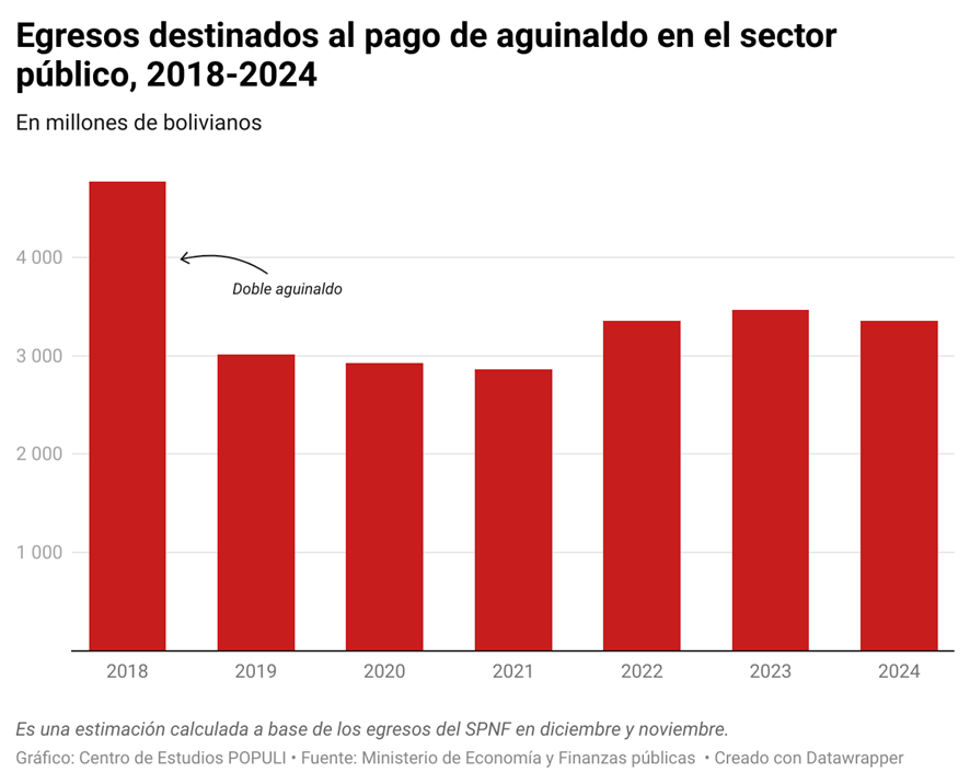 Recientemente, el Ministerio de Trabajo de Bolivia publicó el instructivo sobre las fechas límite para el pago del aguinaldo, tanto para instituciones públicas como para entidades privadas. Esto nos lleva a replantearnos qué significa este gasto, que tal vez respecto al total de un periodo no es tan alto, pero en contextos de crisis como la economía boliviana, puede significar mucho.