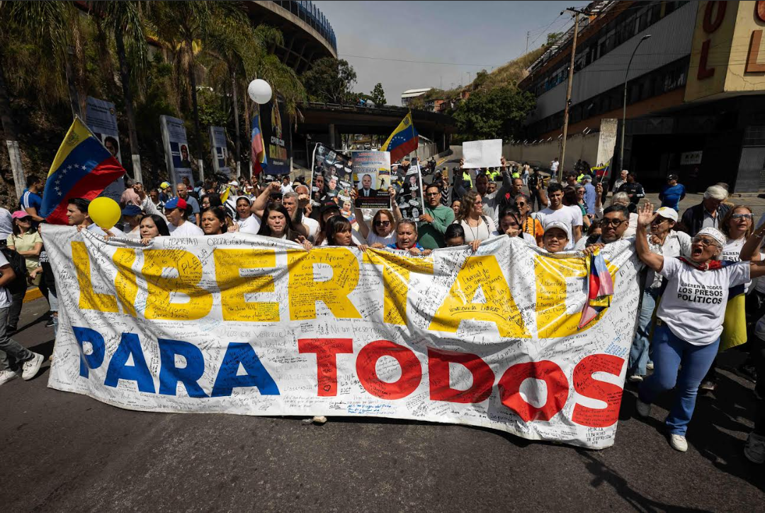 Caracas. – Un encuentro de Oración y Solidaridad “por la paz, la libertad y la reconciliación” se llevó a cabo en los 12 principales centro de reclusión y tortura del país este sábado, especialmente en Caracas, frente al Helicoide, donde familiares de los rehenes políticos del narcorégimen chavista exigieron las liberaciones de todos estos ciudadanos injustamente encarcelados.
