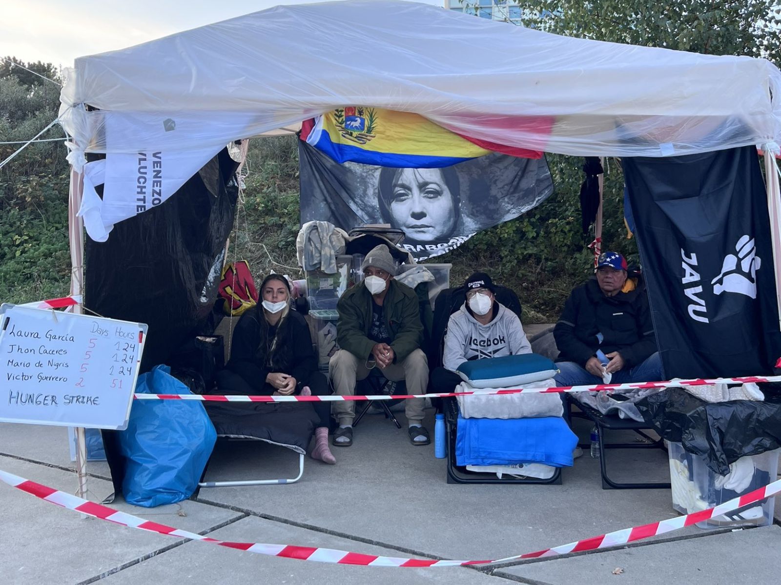 La protesta fue iniciada el pasado domingo por Mario José de Nigris León, Jhon Manuel Cáceres Morillo y Laura Angélica García Contreras. Al trío se sumó otro connacional: Víctor Guerrero Alcántara, quien oficializó su participación en el reclamo.