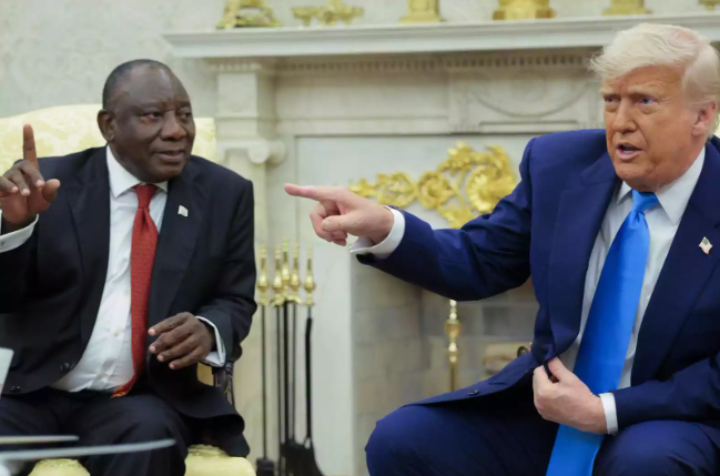 En mayo, Trump recibió a Ramaphosa en el Despacho Oval de la Casa Blanca. Allí, el líder de la superpotencia resaltó en frente de su par sudafricano la persecución y el genocidioque estaba siendo cometido contra la minoría sudafrikaner. Ramaphosa negó estas alegaciones y dijo que en su gabinete servían personas blancas, algo que no desmiente las denuncias elevadas por Trump.