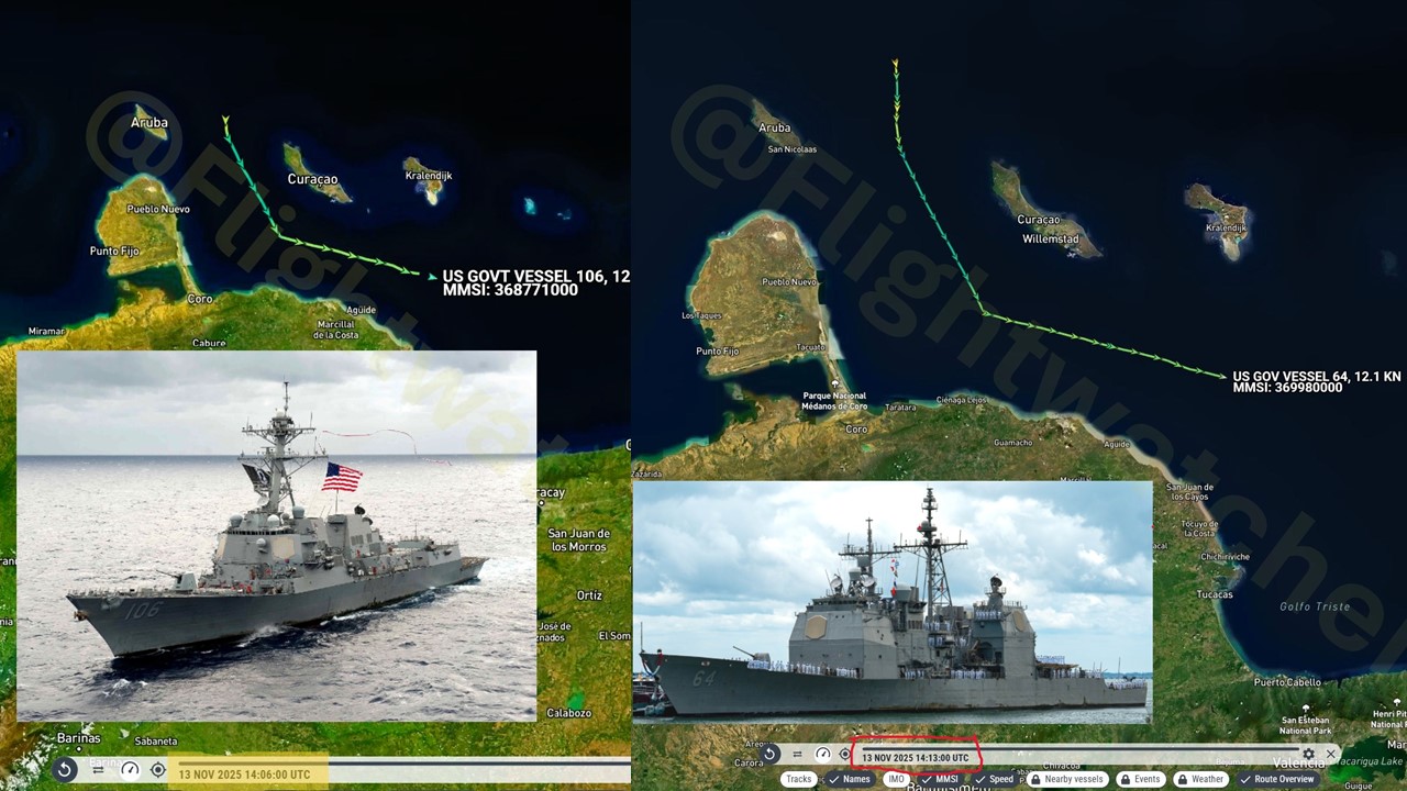 Caracas. – Dos destructores misilísticos estadounidenses, el USS Stockdale (DDG-106) y el crucero de misiles guiados USS Gettysburg (CG-64), fueron divisados este miércoles navegando a solo 50 millas de las costas del estado Falcón.