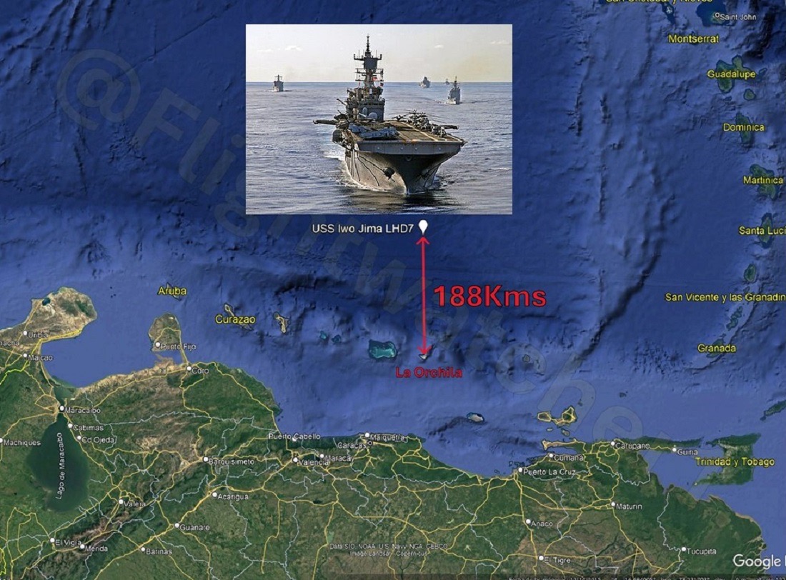 Caracas. – A 188 kilómetros al norte de la isla La Orchila, fue detectado este pasado jueves uno de los principales buques desplegados por Estados Unidos en las costas venezolanas: el USS Iwo Jima (LHD-7).