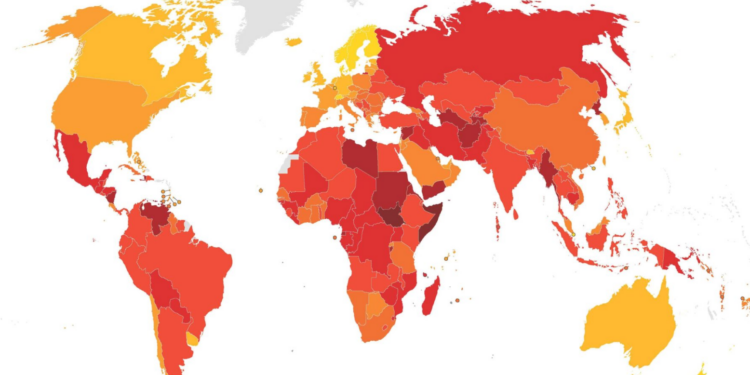 Más del 67% de todos los países del mundo evaluados en el informe (182) «no están logrando controlar la corrupción» y cuentan con una nota inferior 50 puntos, mientras que el número de países con una puntuación superior a 80 se ha reducido de 12 hace una década a solo cinco este año.