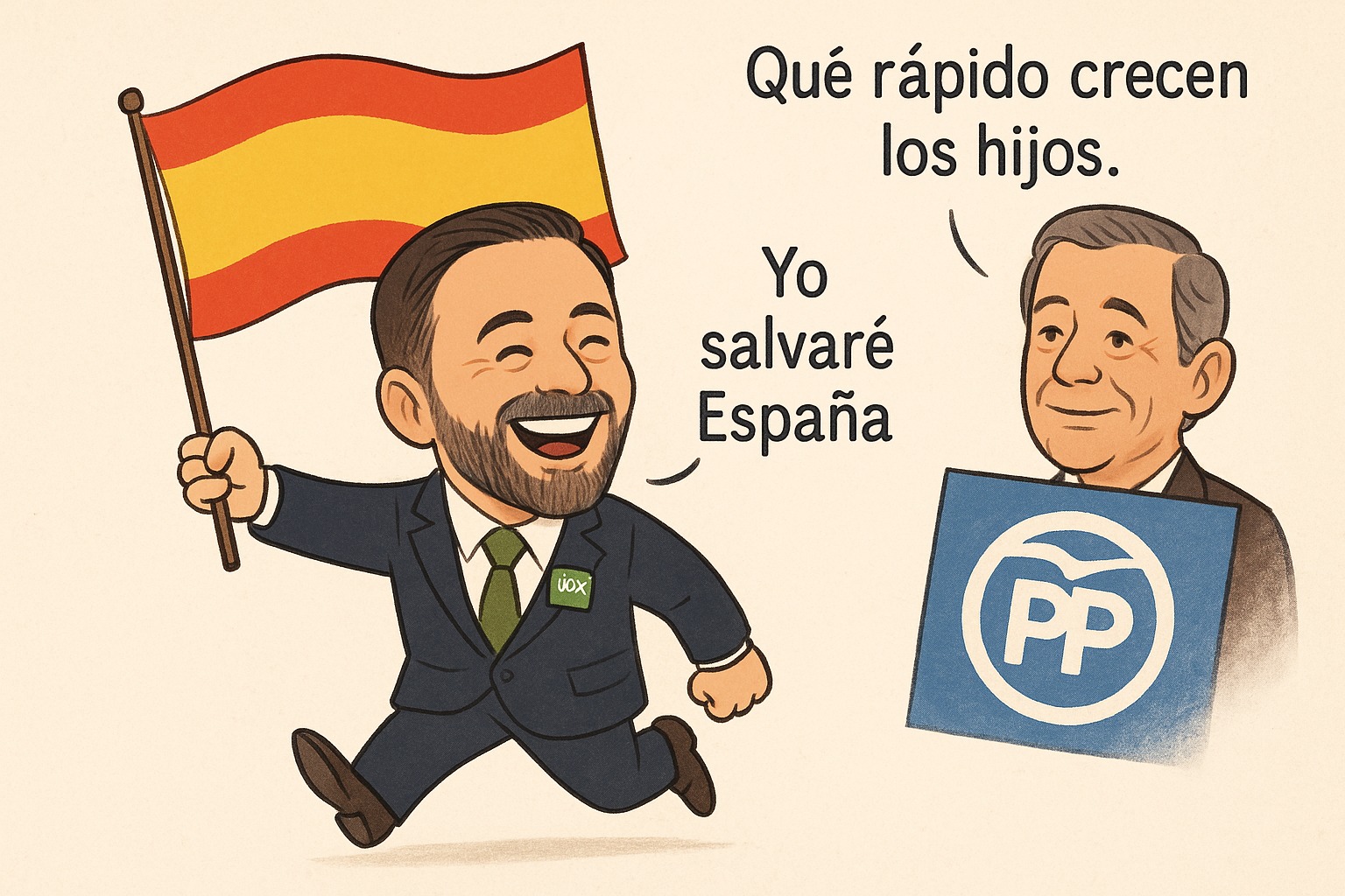 En fin, Vox ha pasado de ser la supuesta esperanza de la derecha sin complejos a convertirse en una especie de PP con testosterona, pero sin calculadora. Su metamorfosis ideológica —de partido disruptivo a club de caballeros airados con el mismo fondo azul de siempre, solo que en verde y con más vena en la frente— ha sido tan emocionante como ver una piedra erosionarse. Y aunque aún se revisten de rebeldía patriótica y agitan banderas como si fueran espadas, lo cierto es que en el fondo no proponen nada que no hayamos escuchado ya en bucle desde hace décadas, pero con menos sustancia y más decibelios.